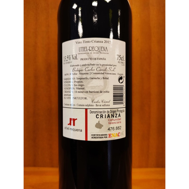 Vino tinto de uva bobal con 5 meses de maduración en barrica elaborado por Bodegas y Viñedos Carres en la DO Utiel-Requena.