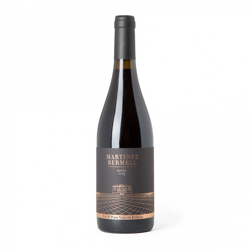 Vino tinto de la variedad Merlot, madurado con dos meses en barricas de roble francés. Elaborado por la bodega Vera de Estenas como vino de pago.