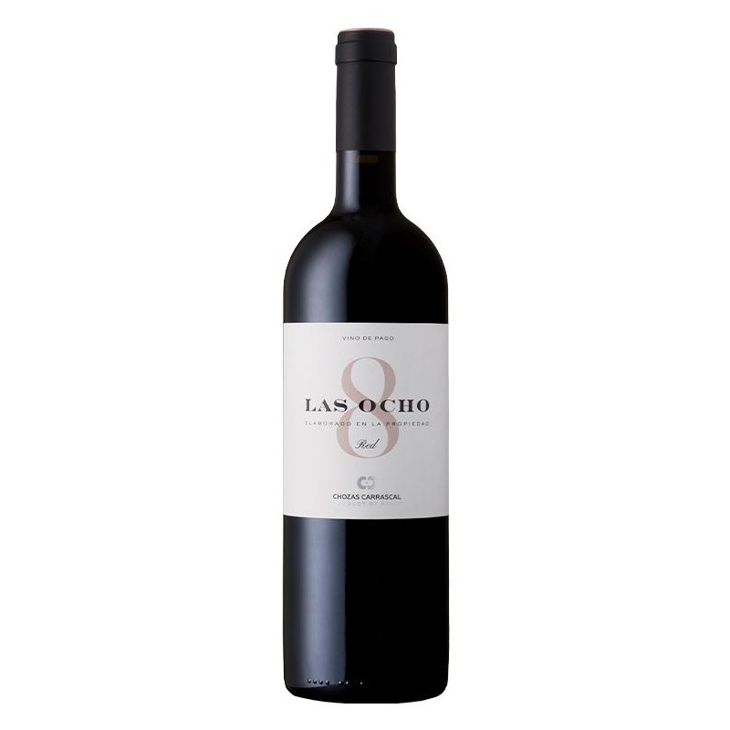 Vino tinto crianza Las Ocho. Elaborado por Chozas Carrascal a partir de 8 variedades distinas: Bobal, Cabernet Franc, Cabernet Sauvignon, Garnacha, Merlot, Monastrell, Tempranillo, Syrah.